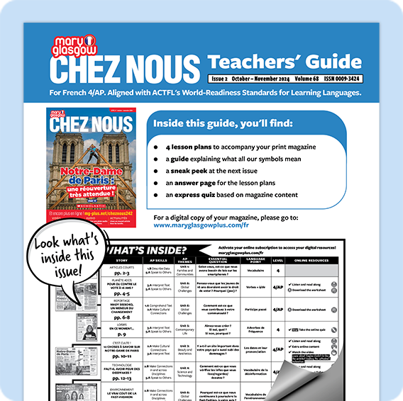 Bring a teen-friendly perspective to language learning with the French resource crafted to create near-native fluency. Fun stories about teen life, traditions, and pop culture raise engagement all year long.